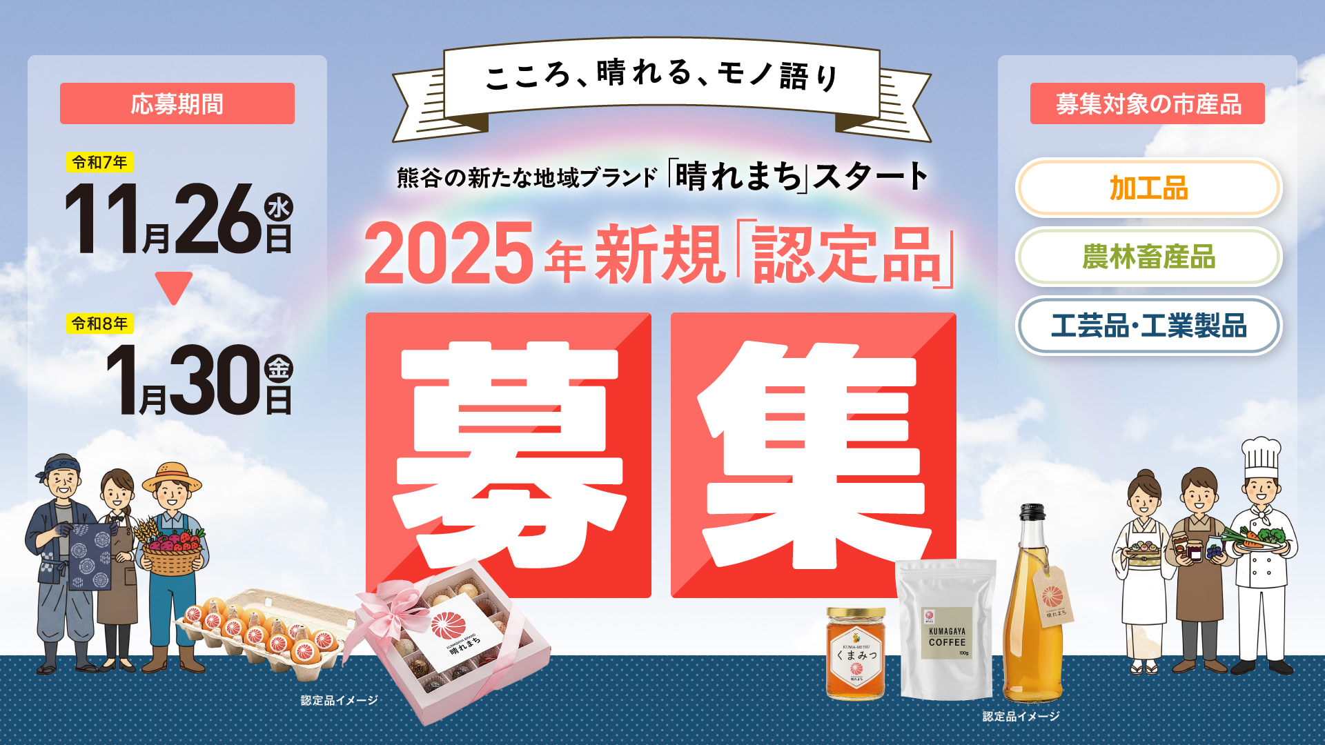地域ブランドとして2025年から新たにスタートした熊谷ブランド「晴れまち」の【認定品】となる市産品を募集します。
